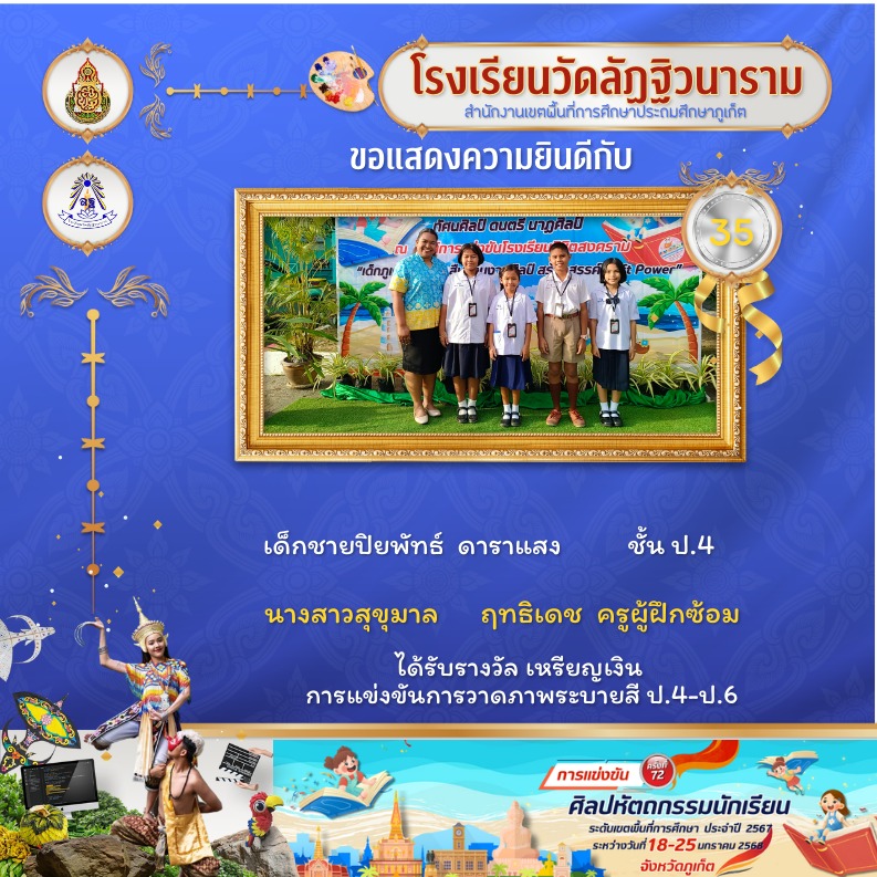 รางวัล เหรียญเงิน การแข่งขันการวาดภาพระบายสี ป.4-ป.6