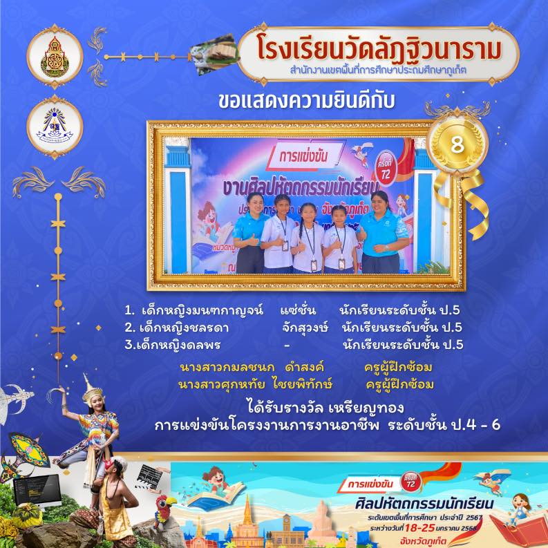 รางวัล เหรียญทอง การแข่งขันโครงงานอาชีพ ระดับชั้น ป.4-ป.6